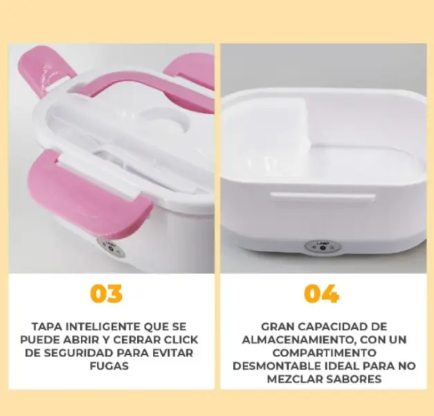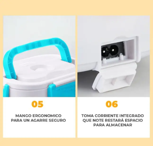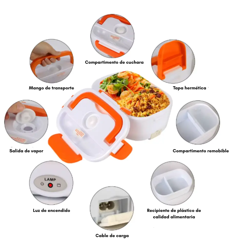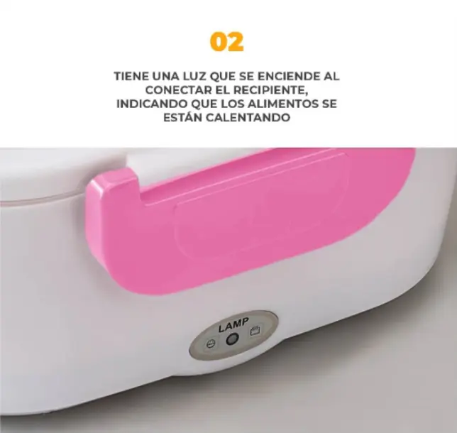 La lonchera incluye su cable de alimentación y su puerto de conexión está diseñado para ser seguro y resistente. Además, cuenta con una luz indicadora que te muestra cuando el dispositivo está encendido y funcionando, brindándote mayor tranquilidad mientras calienta tu comida.